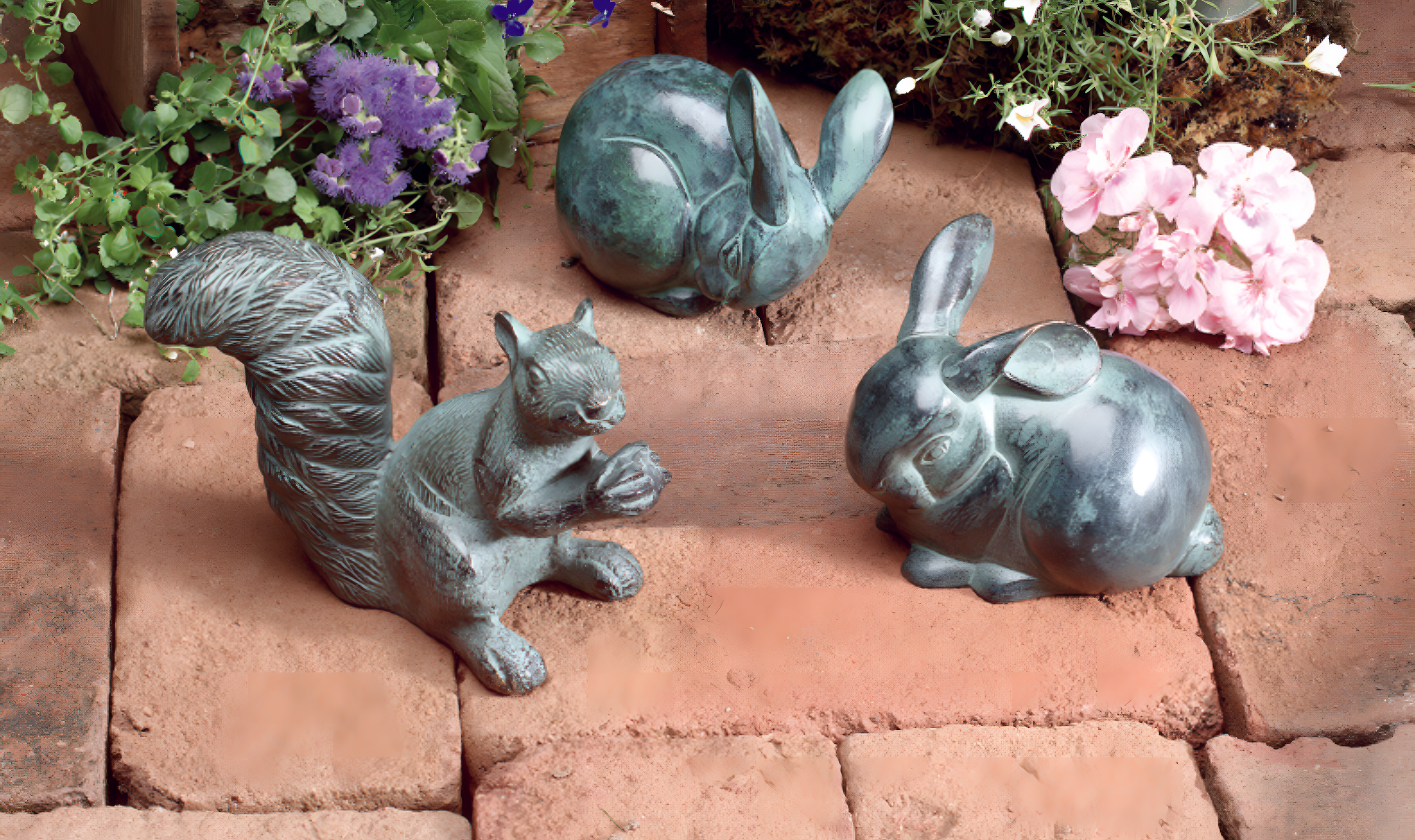 Rabbit Garden Ornament with Verdigris Patina