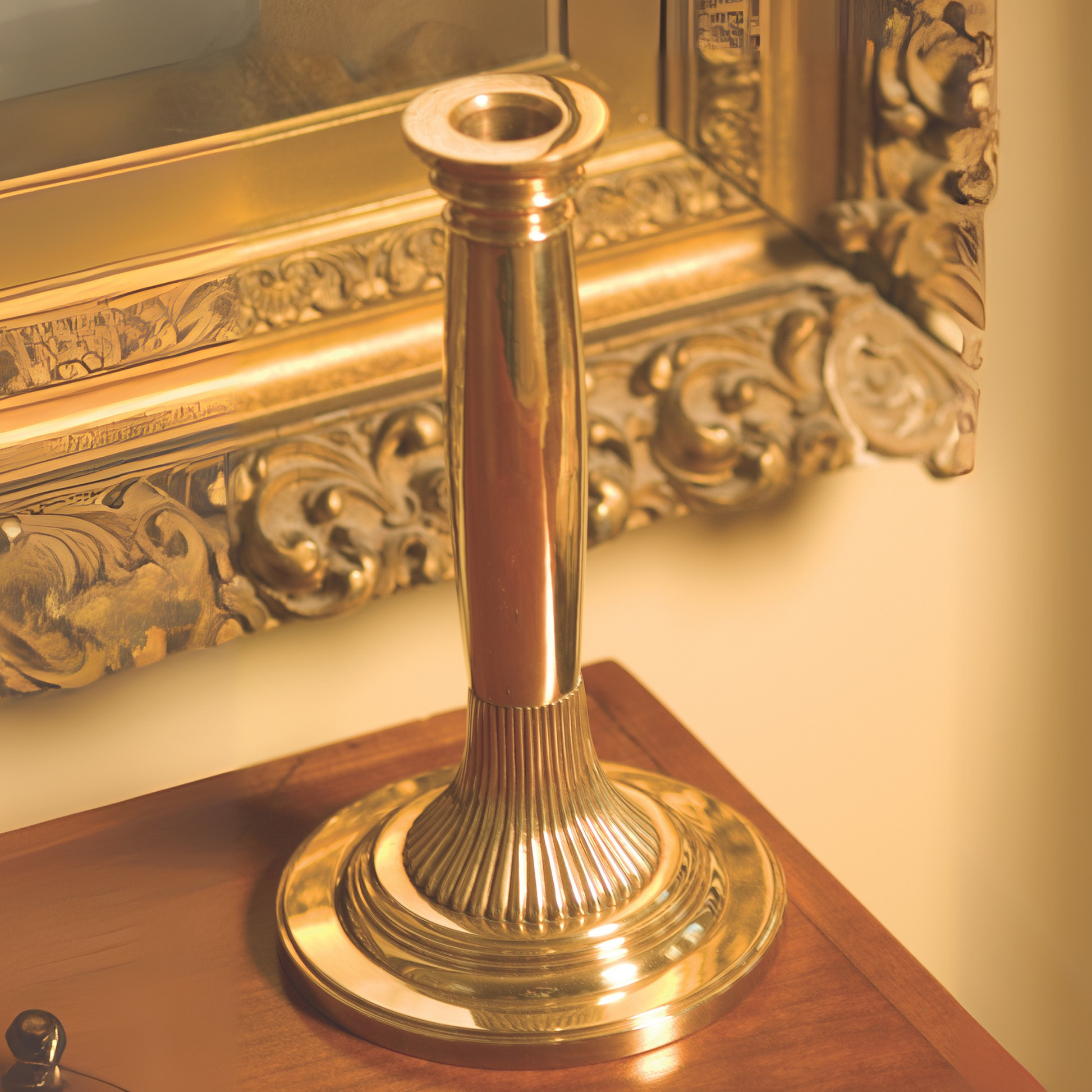 Tall, exquisite and enduring, resembling the grace and elegance of architecture at the University of Virginia in Charlottesville. This candlestick is suitable for any location in your home, from the tabletop to the mantel. Heavily cast in solid brass to the highest standards of quality and precision, reflects elegance, and sophistication. The combination of superior design, weight, and balance makes this brass candlestick holder a true "performing" work of art. The Jefferson Brass Company Charlottesville Brass Candle Holder is available in polished brass.