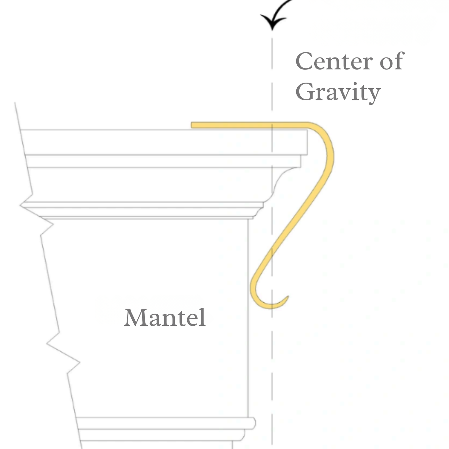 Our stocking hangers illustrate the law of gravity, shifting the center of gravity back onto the mantel surface. When properly positioned, this design allows the hanger to support substantial weight without tipping or slipping — all without damaging your mantel.